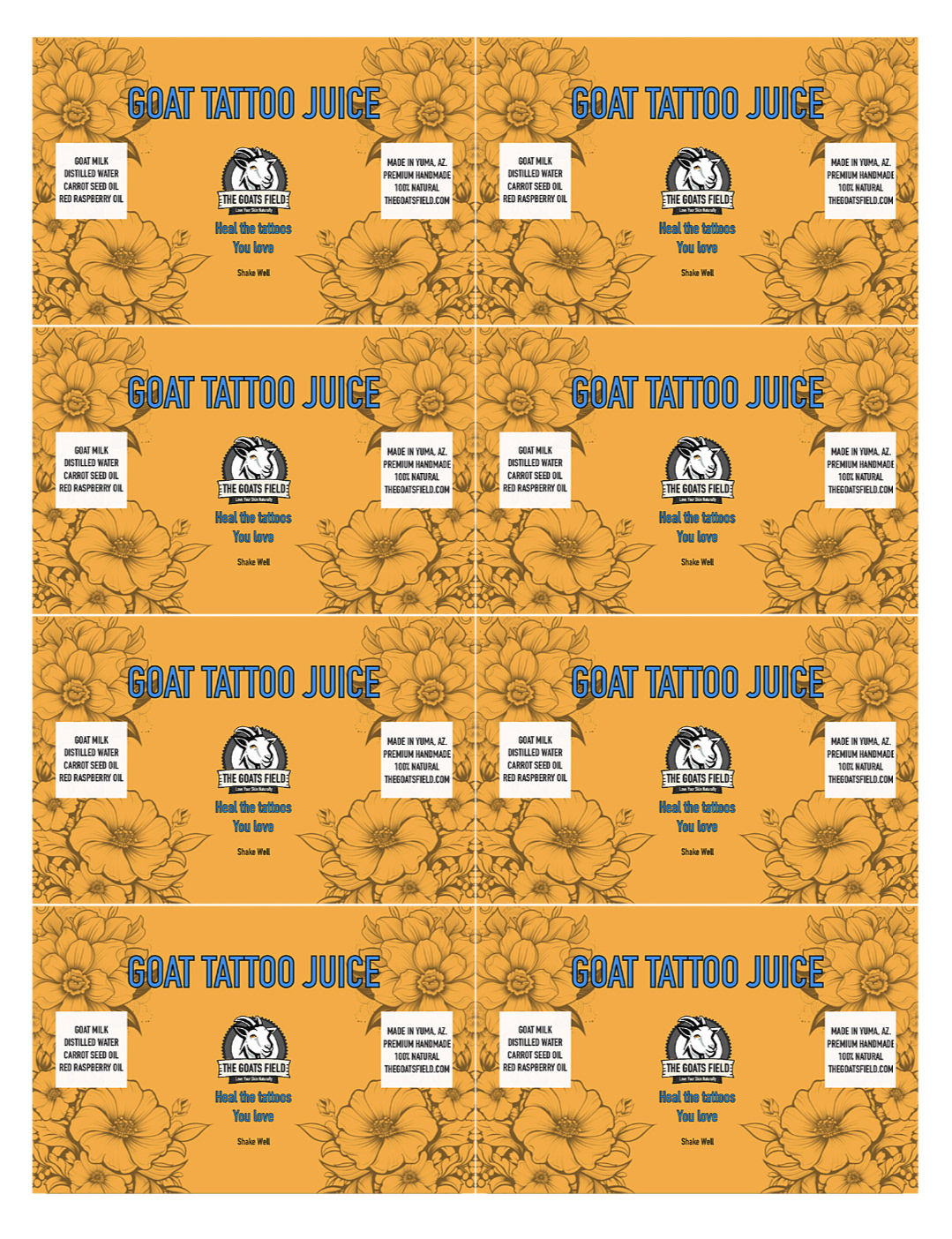 Tattoo juice product label concept to product